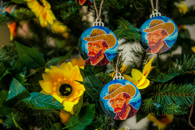 Raman's tree used Van Gogh's likeness and sunflower ornaments to create his untraditional display.