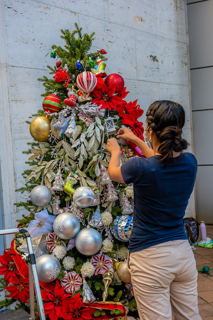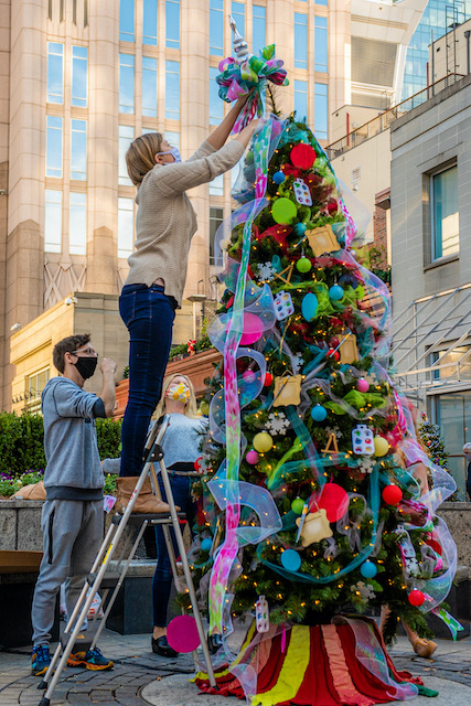Charlotte Center City Partners in partnership with Art Pop Street Gallery and Lowe’s created a holiday art installation in Uptown Charlotte. Regional artists transformed the Truist Plaza into a holiday winter wonderland of uniquely decorated Christmas trees. Lowe’s has provided the pre-lit Christmas trees and assorted decorations for the artists to use in their creations.
