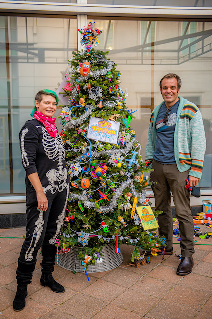 Michele makes art ouf of childrens toys and donated objects - which can be seen in her playful tree!