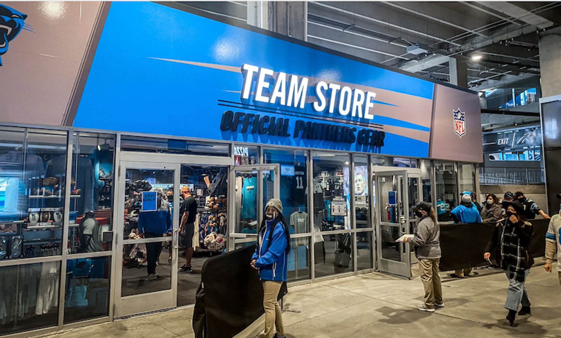 The team store includes Carolina Panthers and Charlotte FC team gear officially licensed through Fanatics. Click here to view the online store.