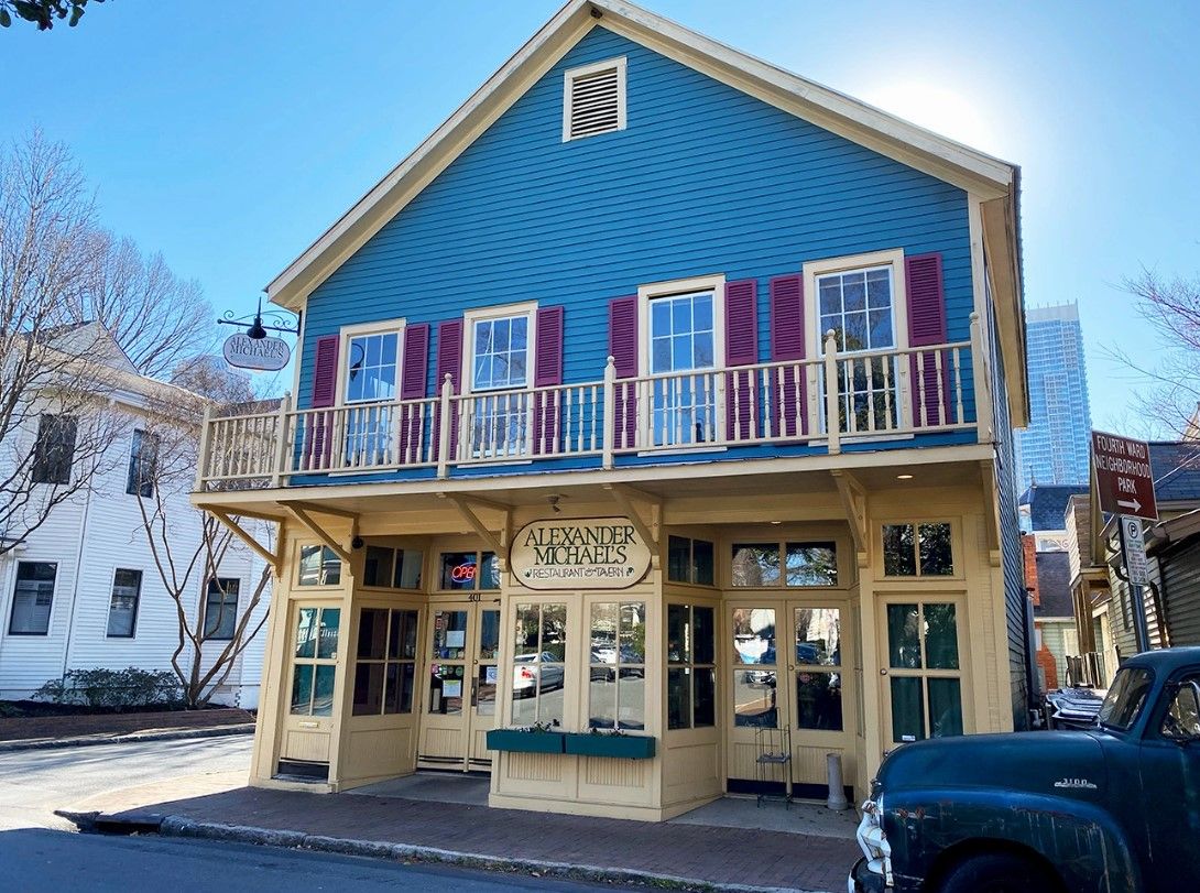 This 1892 Queen Anne-style home on North Church Street is hard to miss with its purple paint and historic charm. It’s the former home of Victorian-era Mayor Sam McNinch and was even visited by President William Howard Taft in 1909. It now serves as a fine dining restaurant and one of the only four diamond restaurants in Charlotte. It also has a private residence on the second floor. The home has been in the McNinch family for most of its history and was the home of McNinch’s daughter Mattie McNinch until 1978, when it was purchased by a private citizen committed to its ongoing restoration. According to local legend, the shadow of the former lady of the house can be seen in one of the upstairs windows.